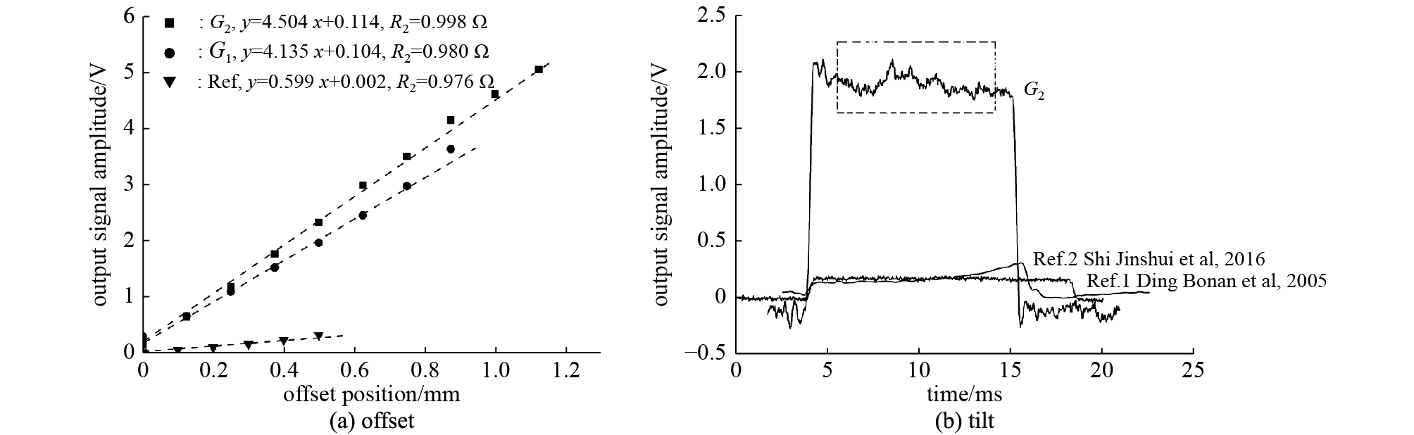 Figure  5.  Typical results of offset measurement sensitivity and tilt scale with diffferent gains (G1 and G2)