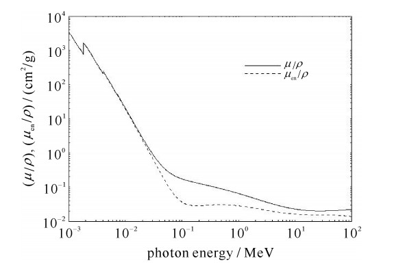 Figure 4. Mass attenuation coefficient for ordinary concrete[7]